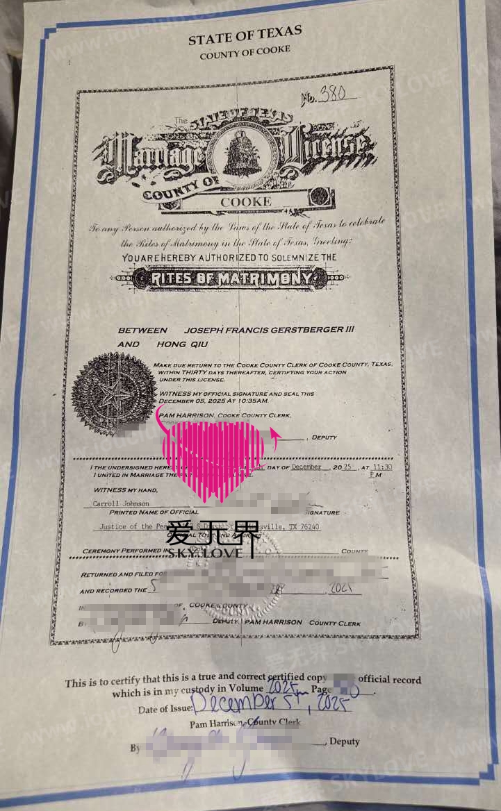 在美国德克萨斯州,她与心爱的Cliff正式注册结婚,成为了彼此法律上和余生中的伴侣!实在是一桩值得大大恭喜的喜事呀!!!