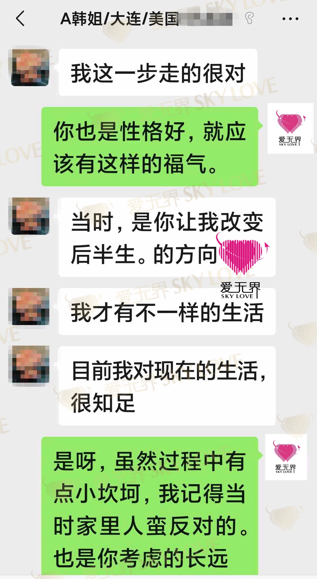 爱无界国际交友首创“中西方教练式服务”,引进美国、澳洲、欧洲等西方知名情感教练,全程融入西方文化思维,为爱无界会员审核英文介绍档案、挑选符合西方审美的形象展示照片……为渴望通过跨国交友寻找爱情的女性提供专业的情感指导、形象打造、翻译服务、签证办理服务、国际理财服务等8项服务。本着“真爱无国界”的理念,致力于为中国单身女性提供专业、高端的跨国交友指导服务,爱无界团队不断开拓西方发达国家的优质男士资源,成为业界成功率最高的交友服务指导机构!